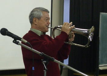 いつもの演奏スタイル・ナッパ服で、最初はみなさんと