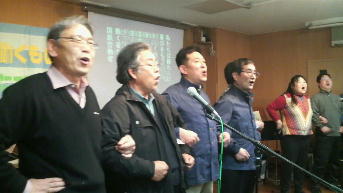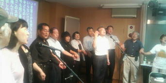 アンコール?で「国鉄労働組合歌」をスクラムを組んでうたい